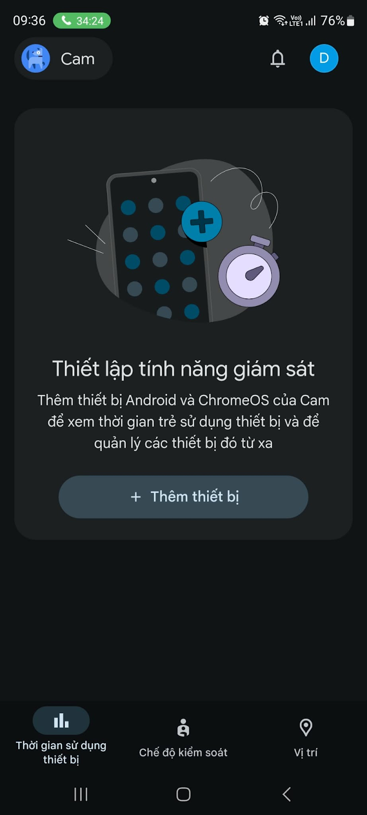 Cha/mẹ có thể theo dõi thời gian sử dụng thiết bị, khóa thiết bị từ xa, và phê duyệt ứng dụng trong Family Link.