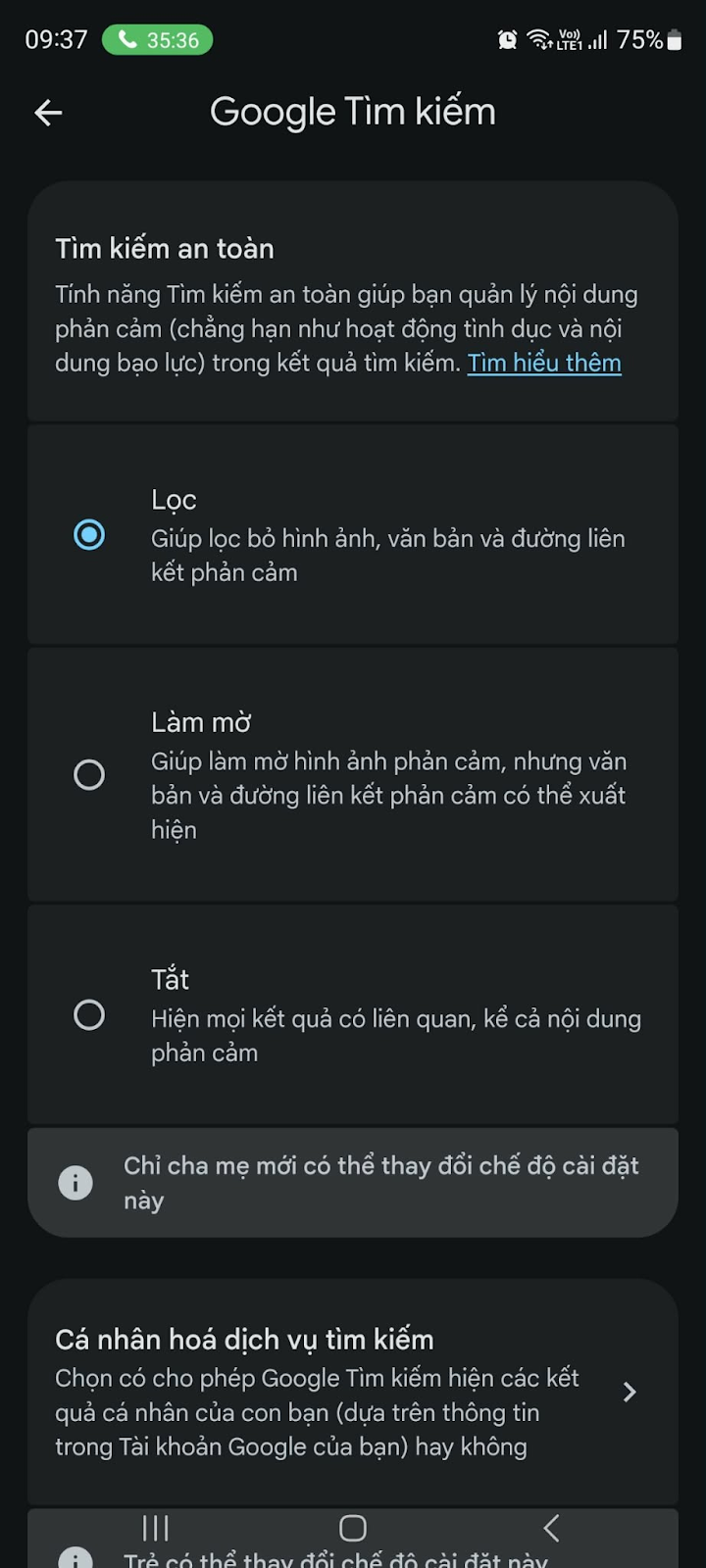 Lưu ý: Chỉ tài khoản cha/mẹ mới có quyền thay đổi cài đặt này.