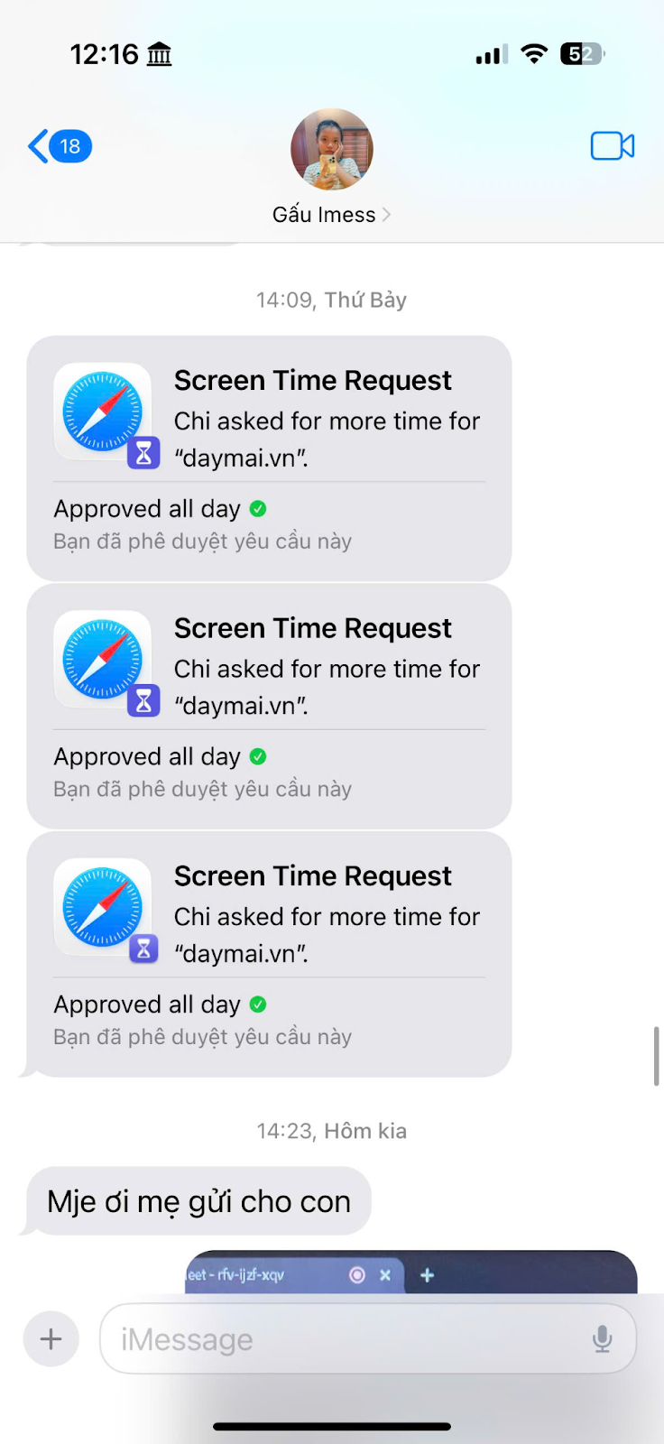 Trẻ có thể gửi yêu cầu xin phép khi muốn truy cập nội dung bị hạn chế.